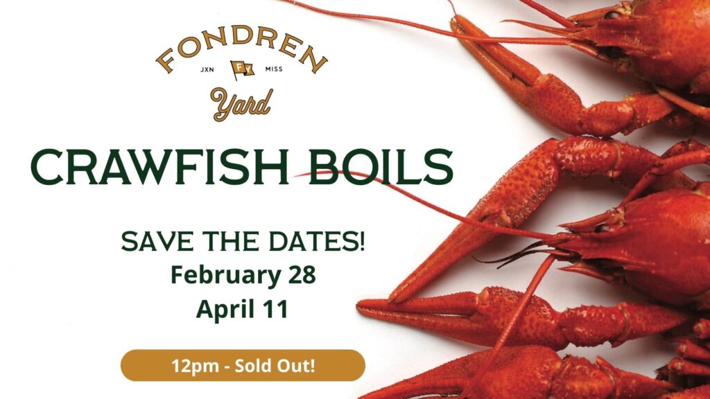 Sunday, March 29 | Crawfish Boil at Fondren Yard Crawfish season has officially arrived in Jackson, and we’re celebrating with a classic Crawfish Boil at Fondren Yard. Join us starting at 12PM at The Block at Fondren in the Historic Fondren neighborhood for fresh, seasoned crawfish served hot until sold out. Crawfish are $12 per […]