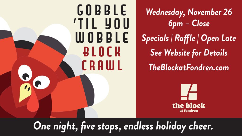 Gobble ’Til You Wobble Block Crawl Wednesday, November 26 | 6 PM – Close Kick off Thanksgiving at The Block at Fondren with the Gobble ’Til You Wobble Block Crawl! Enjoy one festive night filled with holiday cheer as you hop between five unique stops across The Block. 🎟 Raffle: Visit each venue to collect […]